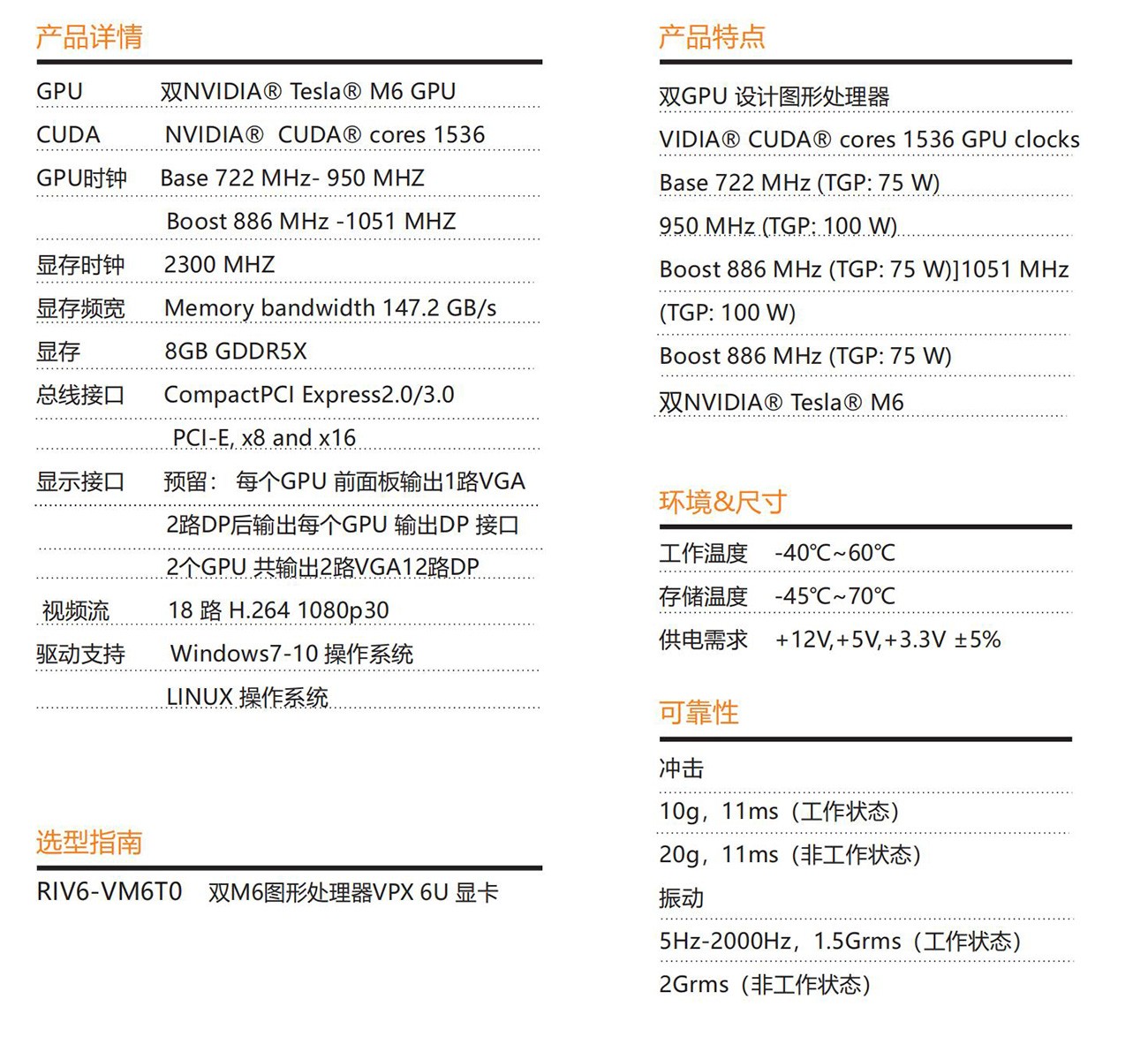 一款高性能雙GPU VPX結(jié)構(gòu)獨立顯卡,采用二個NVIDIA? Tesla?M6 圖 形 加 速 器 芯 片 設(shè) 計 , NVIDIA? Tesla? M6 GPU Memory clock 2300 MHz為256BiT8GB GDDR5顯存 ;具有出色多顯示輸出接口、NVIDIA? Tesla? M6 GPU 加 速器針對刀片式服務(wù)器進行了優(yōu)化,能為數(shù)據(jù)中心的虛擬工作站、桌 面和應(yīng)用程序提供高性能圖形。該加速器與 NVIDIA GRID? 軟件 無縫地配合工作 ,可使企業(yè)虛擬化包括專業(yè)圖形應(yīng)用程序在內(nèi)的眾多 應(yīng)用程序,并將這些應(yīng)用程序傳輸?shù)皆O(shè)備中,該產(chǎn)品有良好計算和圖 形性